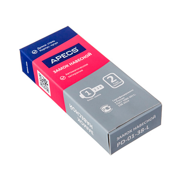 Описание Навесной замок APECS PD-01-L-38 (3 ключа)