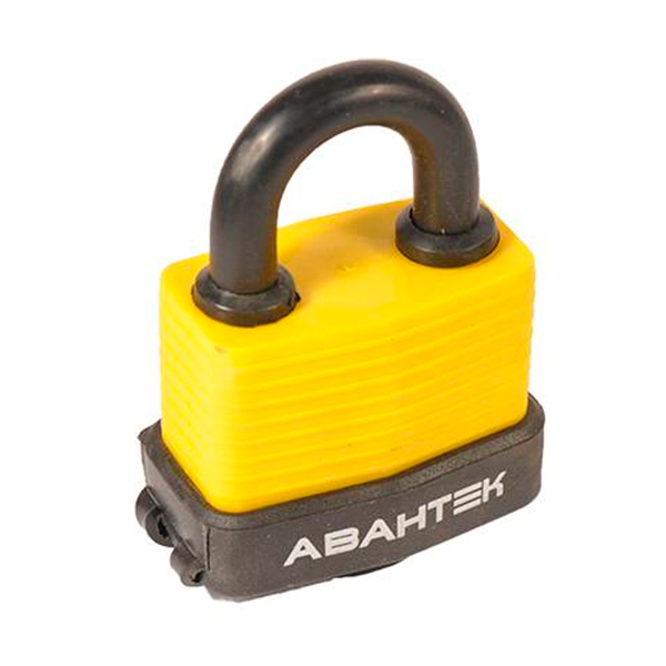 Серия украинских навесных замков АВАНТЕК FL. Этот замок изготовлен из стали. Дополнительно он находится в резиновом чехле, который полностью защищает его от коррозии, влаги, перепада температур и различных погодных условий. Дужка замка изготовлена ​​из закаленной стали. Для повышения надежности дужка дополнительно фиксируется с двух сторон. Вокруг дужки находятся резиновые кольца, которые не дают пыли, грязи и жидкости попасть внутрь замка. Нажатием на дужку замка его можно закрыть без использования ключа. Этот замок с уверенностью можно использовать на улице
