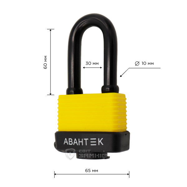 Серия украинских навесных замков АВАНТЕК FL LONG. Этот замок изготовлен из стали. Дополнительно он находится в резиновом чехле, который полностью защищает его от коррозии, влаги, перепада температур и различных погодных условий. Дужка замка изготовлена ​​из закаленной стали. Для повышения надежности дужка дополнительно фиксируется с двух сторон. Вокруг скобки находятся резиновые кольца, которые не дают пыли, грязи и жидкости попасть внутрь замка. Нажатием на дужку замка его можно закрыть без использования ключа. Этот замок с уверенностью можно использовать на улице. Удлиненная дужка позволяет использовать такой замок на широких или неровно расставленных навесах, или в местах, где недостаточно будет высоты скобки модели FL 1565.