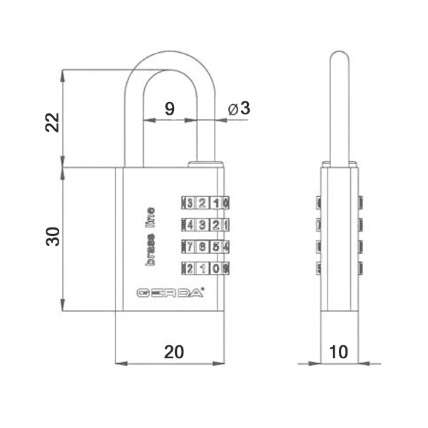 Навесной замок GERDA KMS2030 S 20 кодовый
