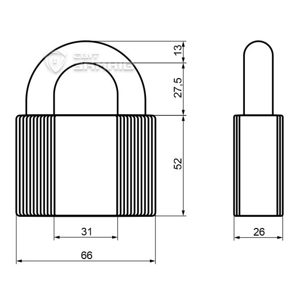 • Высота дужки – 27,5 мм.