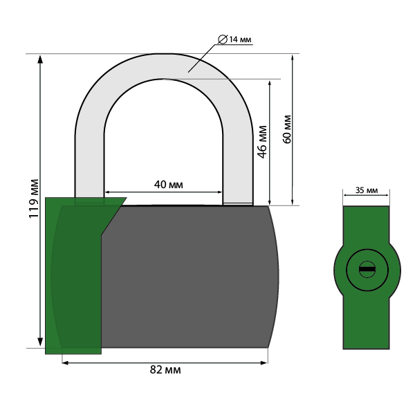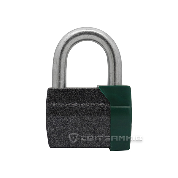 Особливістю замка є наявність контрольної рамки, яка за допомогою встановлення пломби дозволяє визначити несанкціоноване проникнення у приміщення. Конструкція замка забезпечує надійний захист від зламу. Замок має захисний кожух, який захищає його від пилу та вологи. Також він має протизламні елементи, які ускладнюють його відкриття шляхом висвердлювання або виламування. Може використовуватись для захисту будь-якого Вашого майна. Не втрачає своєї працездатності навіть при низькій температурі. Матеріал дужки – сталь. В комплекті має 3 ключа. Секретність замка – 1 500 000.