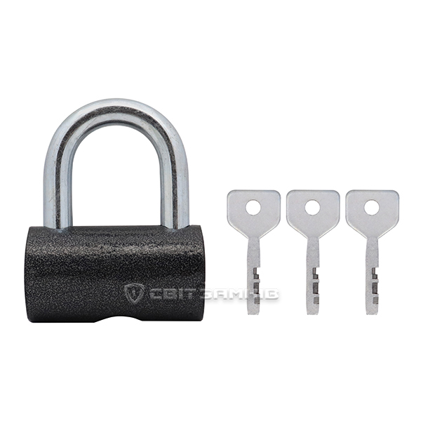 Корпус виготовлений з міцного та довговічного чавуну. Тому даний замок чудово підійде для використання як всередині приміщення, так і на вулиці. Особливо в умовах підвищеної вологості та низьких температур. Закривається даний замок ключем. При замиканні ключ вставляється в отвір корпусу і повертається, а дисковий механізм всередині переміщується і фіксує дужку. Для відмикання механізма ключ повертається в зворотному напрямку.