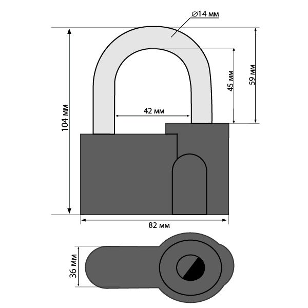 Конструкція замка забезпечує надійний захист від зламу. Для його установки необхідно просвердлити отвір у двері або ворота діаметром 14 мм. Після цього замок встановлюється в отвір і фіксується за допомогою шурупів. Забезпечить довговічний захист Вашого майна. Не втрачає своєї працездатності навіть при низькій температурі. Матеріал дужки – сталь. В комплекті має 3 ключа. Секретність замка – 1 500 000.