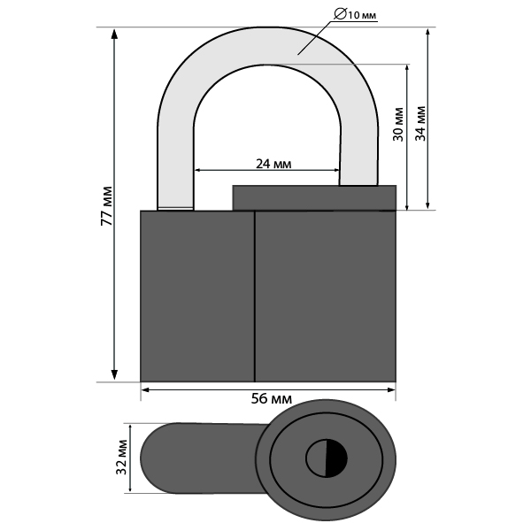 • Діаметр дужки – 10 мм.