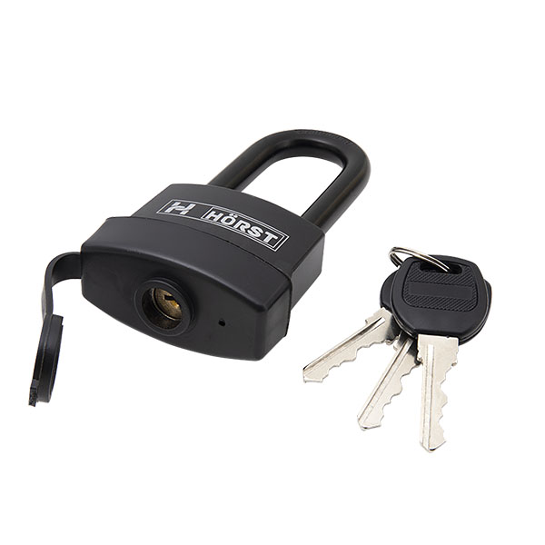 Модель замка HORST HR-WS1L-50E изготовлена ​​в Гонконге в корпусе из ламинированной стали. При этом дужка замка из каленой стали и запирается на две стороны. Это дает средний уровень защиты, благодаря чему замок используют не только для ящиков и шкафчиков, но и для калиток, складских помещений, гаражей и т.д. Способствует этому и то, что корпус защищен от влаги и пыли внутрь и устойчив к коррозии. Закрыть данный замок можно без ключа нажатием на дужку, а открыть английским ключом. Основная особенность – увеличенная высота дужки, что позволяет использовать этот замок на широко расставленных или неровных навесах.