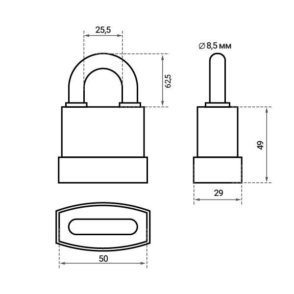 • Диаметр дужки – 8,5 мм.