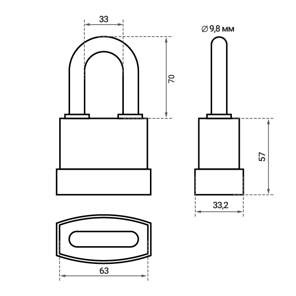 Замок навесной HORST HR-SP1-60D (3 ключа)