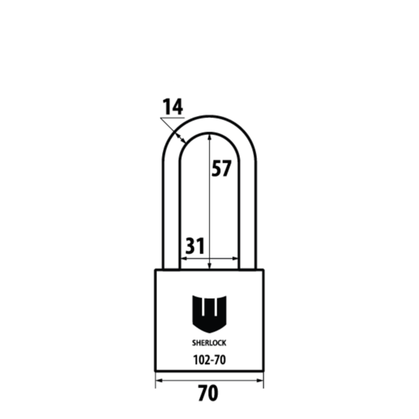 SHERLOCK 102-70 - отличный вариант навесного замка для уличного использования. Литой корпус изготовлен из нержавеющей стали, поэтому устойчив к механическим повреждениям и непогоде.