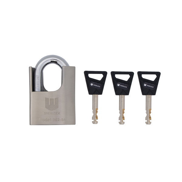 SHERLOCK 302-50 - качественный и надежный замок с дополнительной системой защиты в виде закрытой дужки. Благодаря этому имеет высокую устойчивость к силовому взлому.