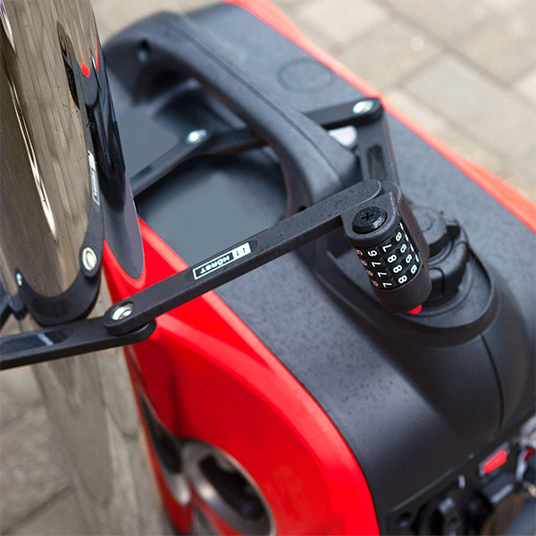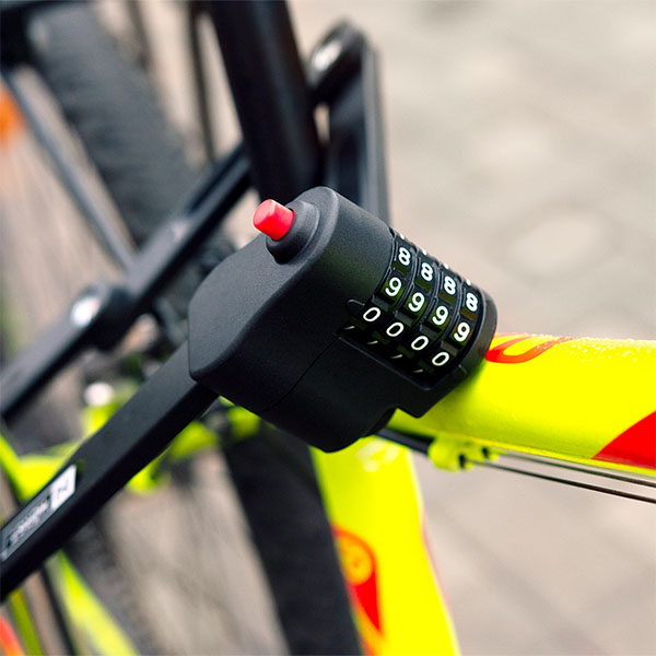 В собранном виде это компактный прямоугольник. Благодаря комплектному креплению его удобно перевозить всегда с собой на велосипеде или в сумке или в рюкзаке. Замок управляется кодовым механизмом. Он отлично подойдет для ежедневного использования, потому что Вы никогда не забудете и не потеряете ключи – закрытие/открытие происходит с помощью установленной Вами комбинации из 4-х цифр кода.