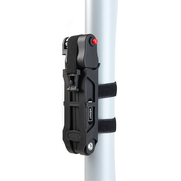 HORST HR-V7-7/800 – это сегментный замок для велосипеда длиной 80 см. Конструктивно состоит из 6 стальных пластин толщиной 7 мм, покрытых ПВХ-покрытием. Прочные подвижные шарниры обеспечивают высокий уровень соединения и безопасности.