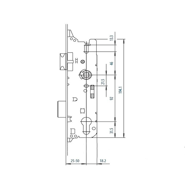 Описание Механизм замка FUHR 856 защелка 25*92 мм рейка 2170 мм с грибовидными цапфами