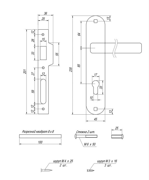 Комплектность замка механизм + ручки