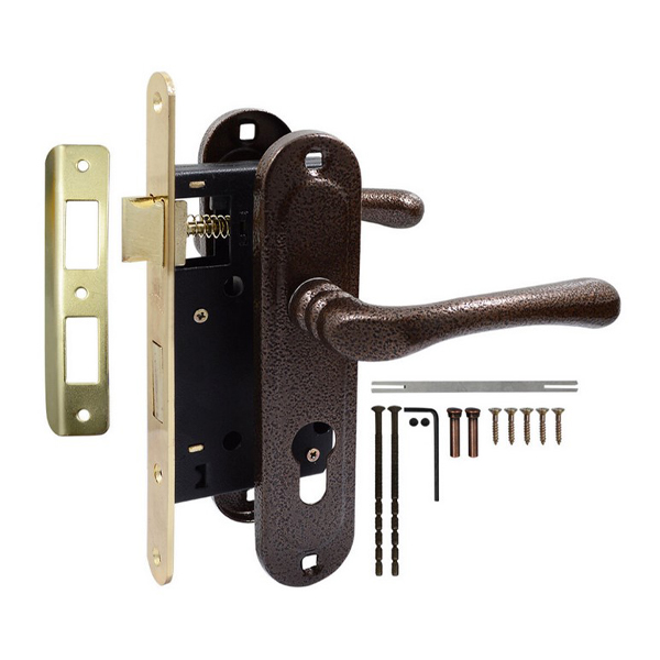 BRUNO 968 – это комплект замка, который предназначен для межкомнатных деревянных дверей. Он включает в себя врезной механизм с ручкой на планке.