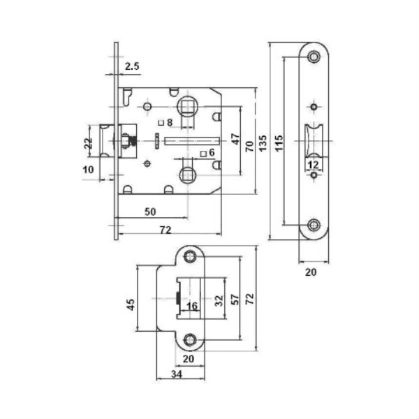 Механізм замка з ручками – зручний варіант для міжкімнатних дерев’яних дверей. Реверсивний язичок дозволяє установити замок як на ліві, так і на праві двері. Керується нажимною ручкою та воротком.