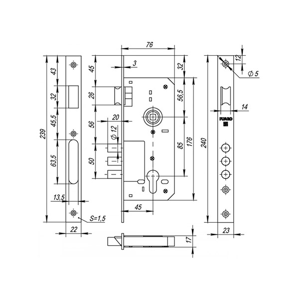 Фурнитура для дверей ТМ FUARO является прекрасной альтернативой более известных брендов. Данная модель - это 3-х ригельный основной врезной замок, который устанавливается на входную дверь из металла и дерева. Полный выход ригелей составляет 20 мм. Управляется ручками и сердцевиной стандарта EURO DIN. Она в комплект не входит и докупается отдельно в зависимости от ваших потребностей. Благодаря реверсивному язычку подходит как для лево, так и право-сторонних двери.