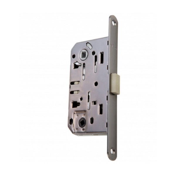 Замок серии бесшумных механизмов ТМ MVM оснащен современной технологией закрывания на магните. При закрытии двери на вороток, язычок блокируется в открытом положении, а ручка продолжает свободно нажиматься. Металлопластиковый язычок высовывается только когда дверь закрыта. Для этого в ответную планку встроен магнит. Сам процесс закрывания не требует дополнительных усилий и не создает шума. Используется обычно в межкомнатных дверях ванной и туалета. В открытом положении торец эстетически смотрится без каких-либо выступов.
