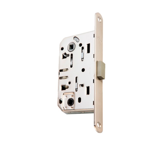 Замок серии бесшумных механизмов ТМ MVM оснащен современной технологией закрывания на магните. При закрытии двери на вороток, язычок блокируется в открытом положении, а ручка продолжает свободно нажиматься. Металлопластиковый язычок высовывается только когда дверь закрыта. Для этого в ответную планку встроен магнит. Сам процесс закрывания не требует дополнительных усилий и не создает шума. Используется обычно в межкомнатных дверях ванной и туалета. В открытом положении торец эстетически смотрится без каких-либо выступов.