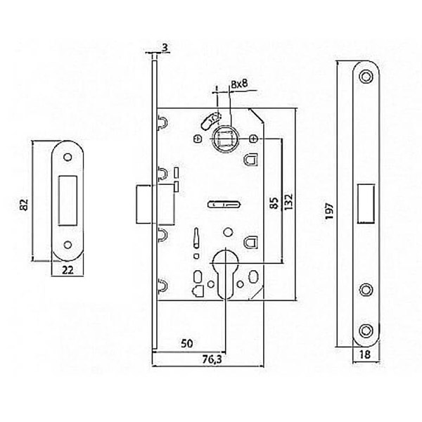Механизм замка CISA 44661.30.0.20 язычок (BS30*85мм, 22 мм) нержавеющая сталь