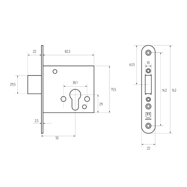 Закрывание производится одним прямоугольным ригелем из стали. Он надежно фиксирует дверь, обеспечивая достаточный уровень безопасности. Полный выход составляет 22 мм. Данный замок идеально подходит для установки в качестве дополнительного замка в металлическую или деревянную дверь квартир, домов, гаражей или коммерческих помещений.