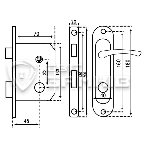 Комплектность замка механизм + ручки