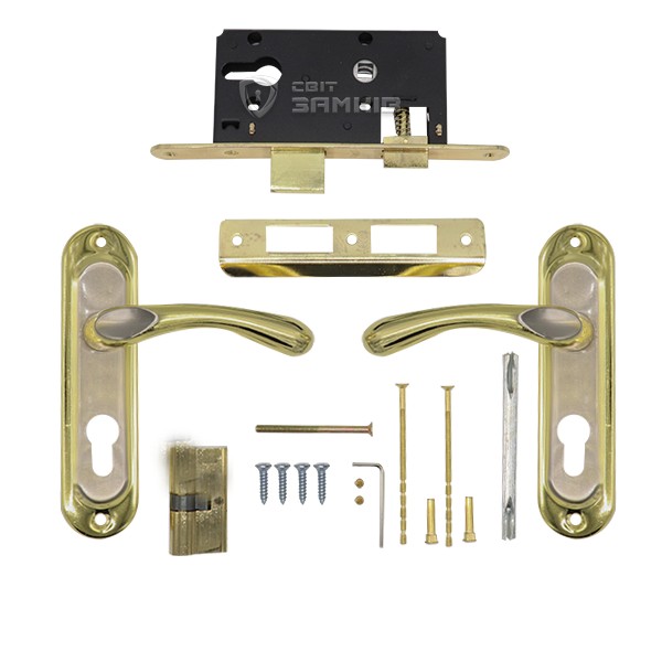 Комплектность замка механизм + ручки + сердцевина