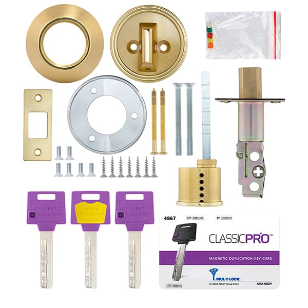Замок врезной MUL-T-LOCK Dead Bolt DBM ClassicPro (BS60мм) полированная латунь