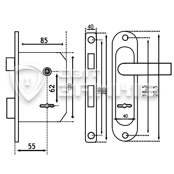 Описание Комплект замка ТАНДЕМ (BS55*62мм) сувальдный