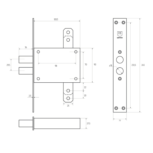 Используется для дверей в квартирах, офисах, складских помещениях и гаражных воротах. Значительно увеличивает время открывания двери силовыми методами. Размер выхода двух рилелей – 36 мм. Универсальный – устанавливается как на левую, так и правую дверь.