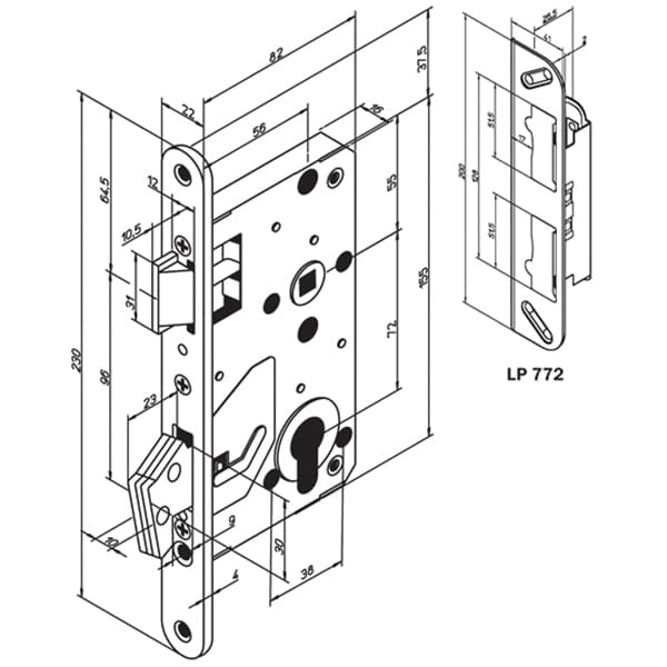 Механизм замка LOB Z-755B (BS55*72мм) цинк