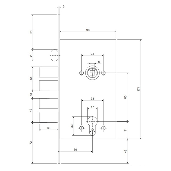 Механизм замка KALE 252 R (BS60*85мм) хром
