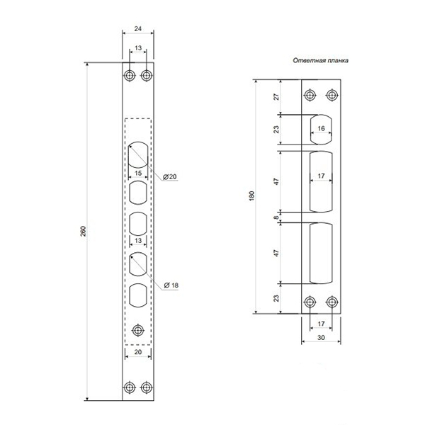 • Четыре ригеля диаметром Ø 18 мм.