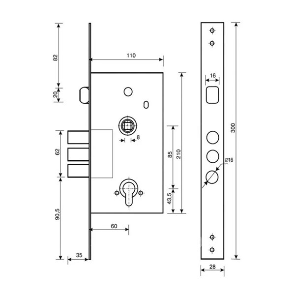 • Корпус замка взаимозаменяем с другими замками серии: CLASS 252RL, KALE 252 R.