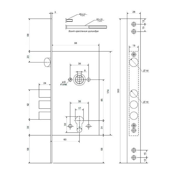 • Предназначен для ПРАВОСТОРОННЕЙ двери.