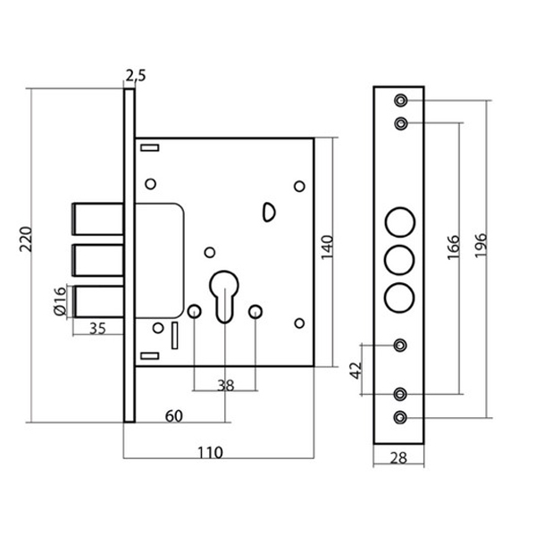 Механизм замка HORST HR-06S (BS66,5*42мм) правый