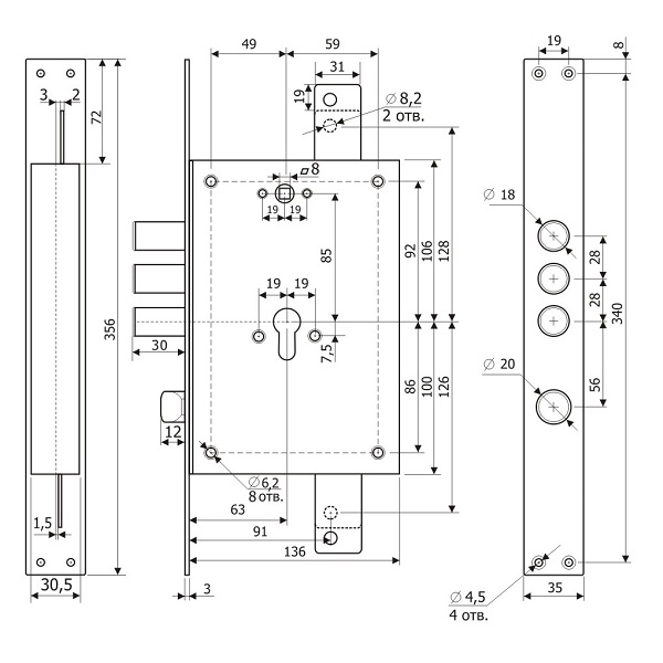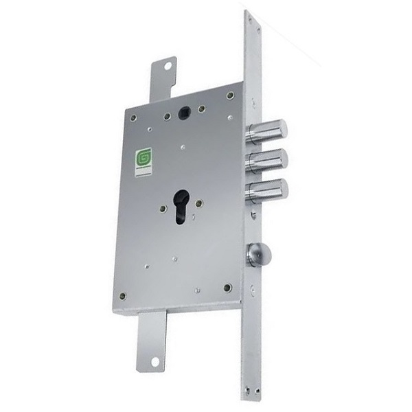Замок ТМ ГАРДИАН модели 22.12 Т это - 3-х ригельный замок с защелкой, который управляется ручкой и цилиндровым механизмом в виде сердцевины распространенного у нас стандарта EURO DIN. Корпус замка монтируется в качестве основного. Обычно мастера ставят ГАРДИАН 22.12 Т в металлических дверях, а при необходимости даже шкафах и сейфах. Универсальный: подходит для дверей правого и левого открывания. Замок оснащен дополнительными креплениями для тяг.