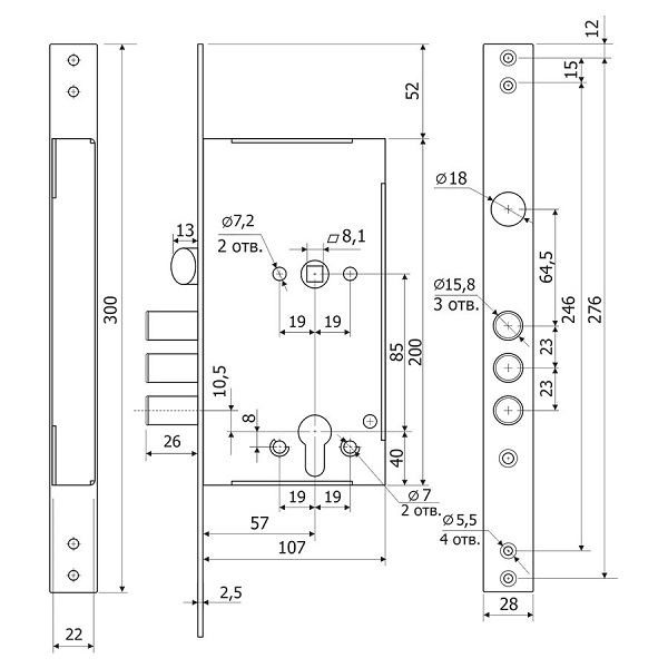 Механизм замка CISA 44661.30.0.20 язычок (BS30*85мм, 22 мм) нержавеющая сталь