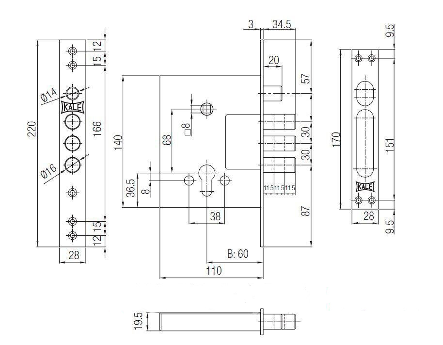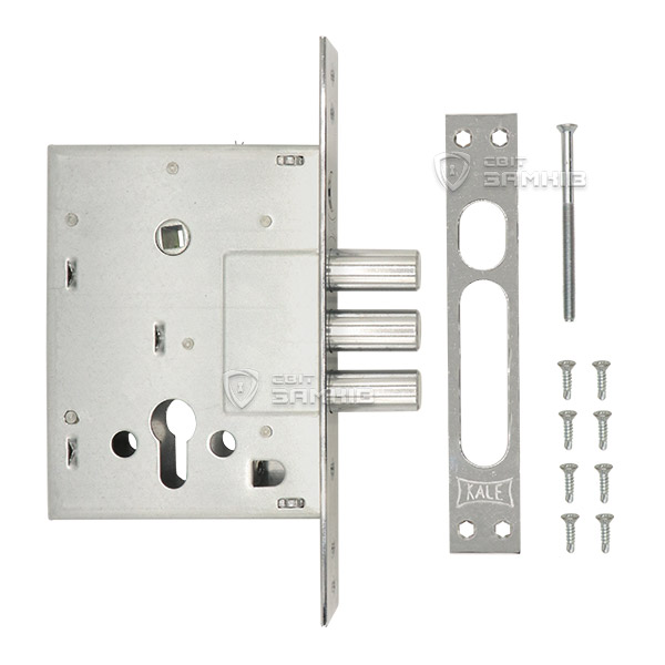 Дверная фурнитура турецкой ТМ KALE является одной из лучших по соотношению цена/качество. Данная модель - это 3-х ригельный врезной замок, который устанавливается на металлические входные двери. Не имеет язычка, поэтому используется в качестве дополнительного верхнего замка. Полный выход ригелей диаметром 16 мм составляет 34,5 мм. Управление происходит сердцевиной стандарта EURO DIN. Она в комплект не входит и докупается отдельно в зависимости от ваших потребностей. Особенностью этой модели является четвертый ригель, закрыть/открыть который можно только воротком с середины помещения.