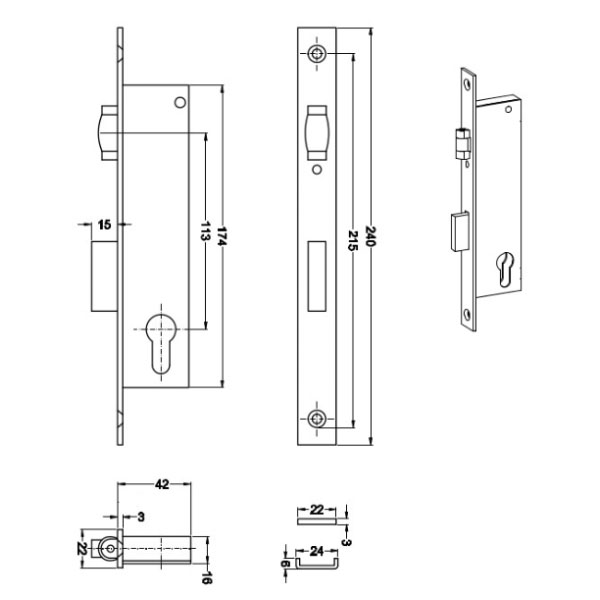 Описание Механизм замка LOB Z-025R (BS25мм, 22мм)
