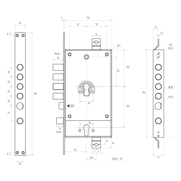 Описание Механизм замка POTENT 1970MN TOP двухсистемный (BS63*85мм) правый