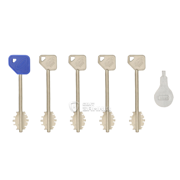 На корпусе есть проушины для крепления тяг. Они докупаются при необходимости отдельно. В комплекте поставляются 5 длинных сувальдных ключей длиной 120 мм.
