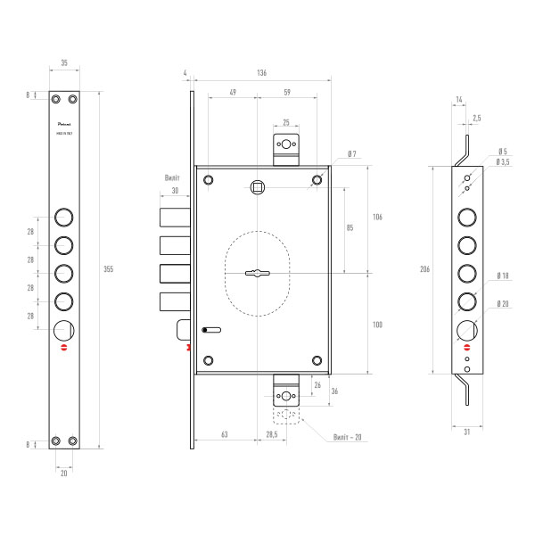 Описание Механизм замка POTENT 7000 (BS63*85мм) 5 длинных ключей
