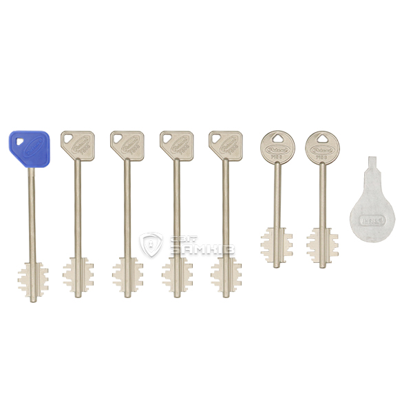 Фишкой POTENT 7170 является система "Гостевой ключ". В комплекте кроме 5-ти основных ключей длиной 98 мм есть еще 2 гостевых. Они закрывают замок только на 2 оборота, в то время как главные ключи – на 4. После полного закрывания основным ключем гостевой не может управлять замком. Таким образом, можно сделать невозможным вход в помещение в нужный промежуток времени.