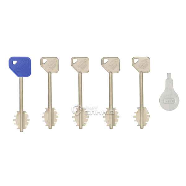 На корпусе имеются проушины для крепления тяг. Они докупаются при необходимости отдельно. В комплекте поставляются 5 сувальдных ключей длиной 98 мм.