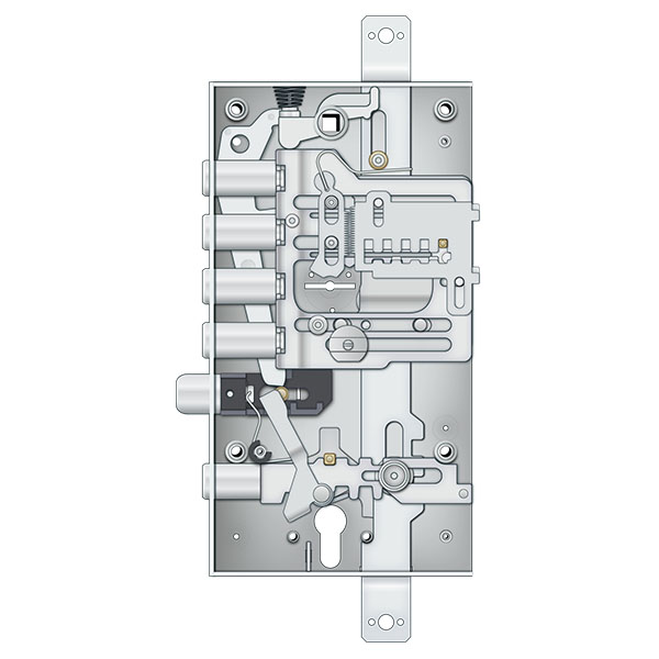 Сувальдный механизм управляет четырьмя основными ригелями, а сердцевина – дополнительным. Они взаимосвязаны на 4-м обороте. Это означает, что после закрытия сувальдным ключом и ключом цилиндра сувальдный механизм перестает работать до момента разблокировки сердцевины.