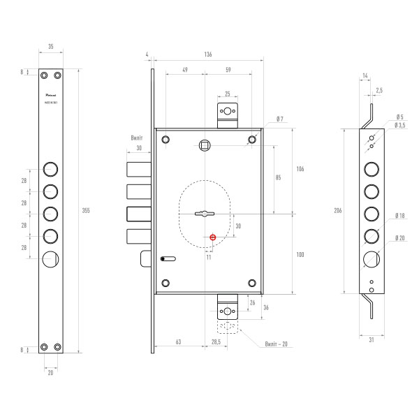 • Язычок реверсивный – замок подходит на правую и левую дверь.