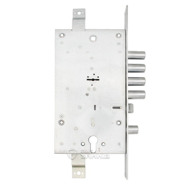 Благодаря второй блокирующей стойке на ригельной пластине замок POTENT 8170 обладает защитой от выбивания ригелей. Дополнительно корпус замка стягивается винтами с двух сторон, что обеспечивает защиту от силового взлома. Важным аспектом является то, что все элементы корпуса обладают антикоррозионным покрытием. Это обеспечит долговременное использование в течение большого периода времени.