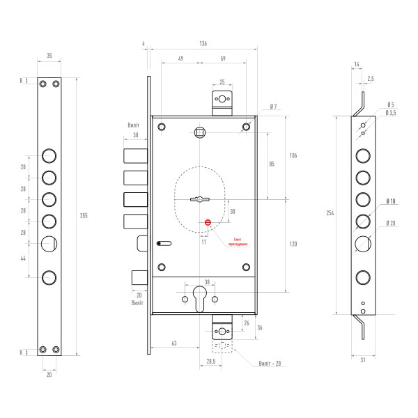 Описание Механизм замка POTENT 8170 двухсистемный (BS63*85мм) 3 длинных ключа