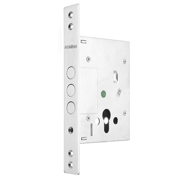 SANTOS 257L-C – это 3-х ригельный врезной замок, который устанавливается на металлическую или деревянную входную дверь. Нет язычка, поэтому используется в качестве дополнительного верхнего замка.